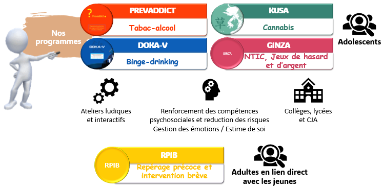 C’est un programme de prévention des addictions (tabac, alcool, paka, jeux de hasard et d’argent, nouvelles technologies d’information et communication) qui a pour principal objectif d’éviter les consommations problématiques des jeunes.